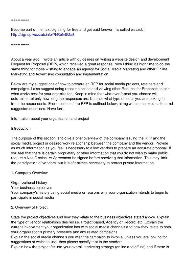 Digital Marketing Request for Proposal Template Prepared by ! 1 RFP TEMPLATE Are you pursuing content marketing programs, social media marketing, online It might be difficult to explain your vision, so providing examples of companies you admire will help clarify what you hope to ... Access Full Source